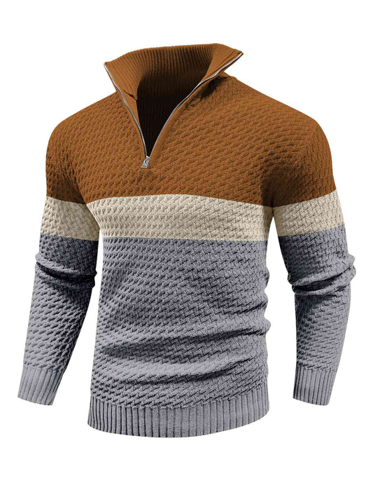 Twill Colorblock Quarter-Zip Turtleneck Sweater
