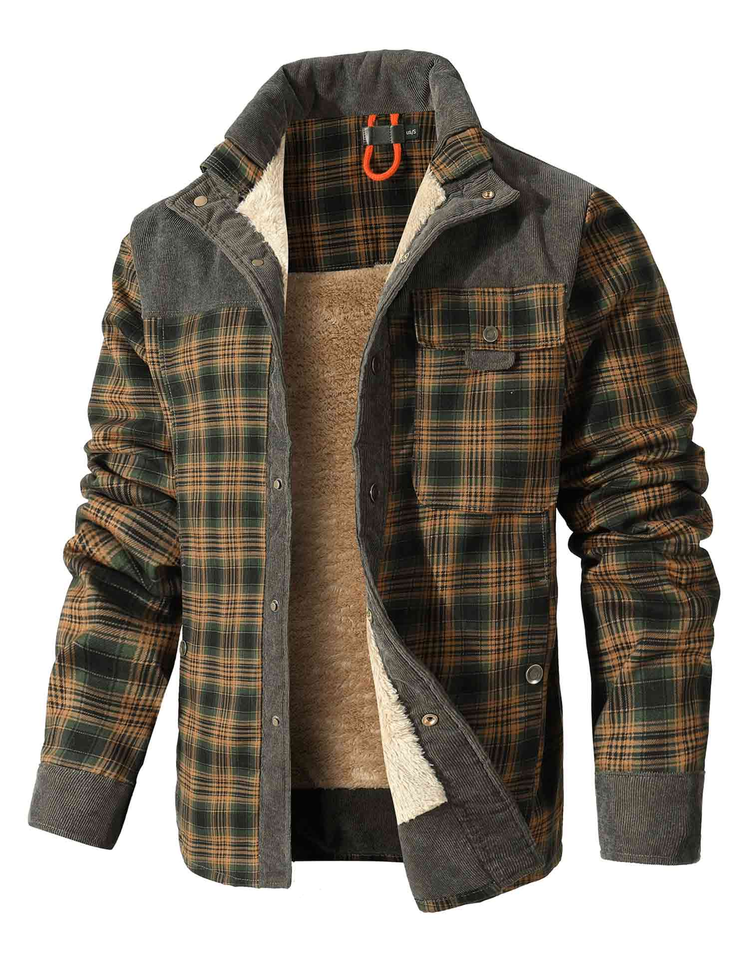 ZAITUN Men's Corduroy Plaid Flannel Shirt Jacket