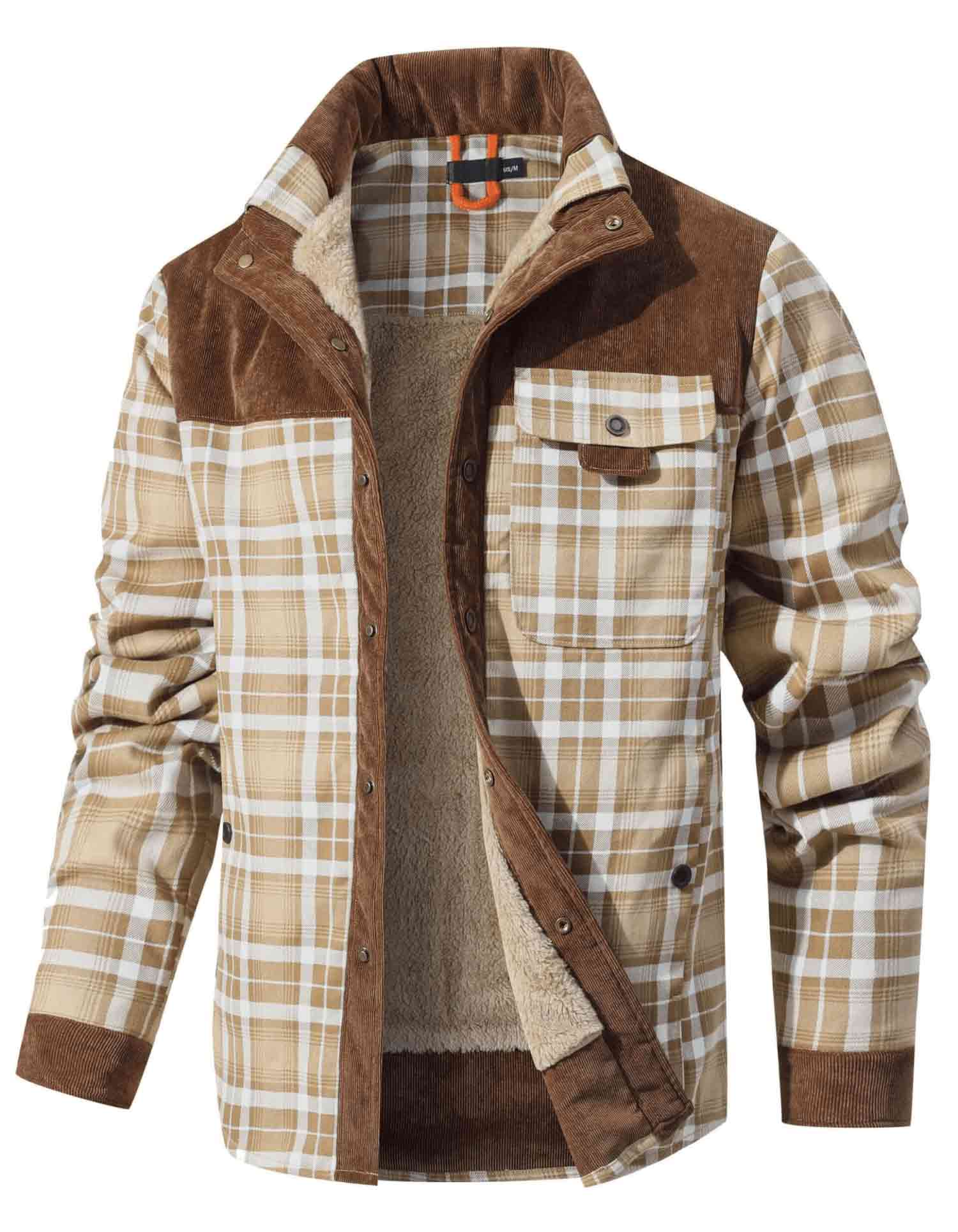 ZAITUN Men's Corduroy Plaid Flannel Shirt Jacket